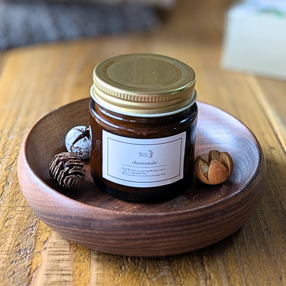 茶色の小瓶に包まれたこのキャンドルは