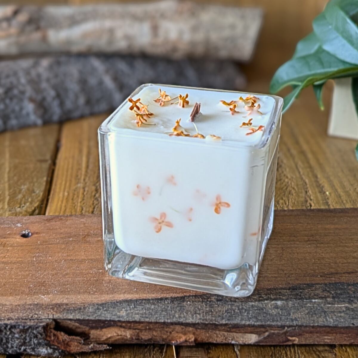キャンドル アロマ 香り 木芯 焚き火 癒し お風呂 ソイワックス スクエア 金木犀 2025秋