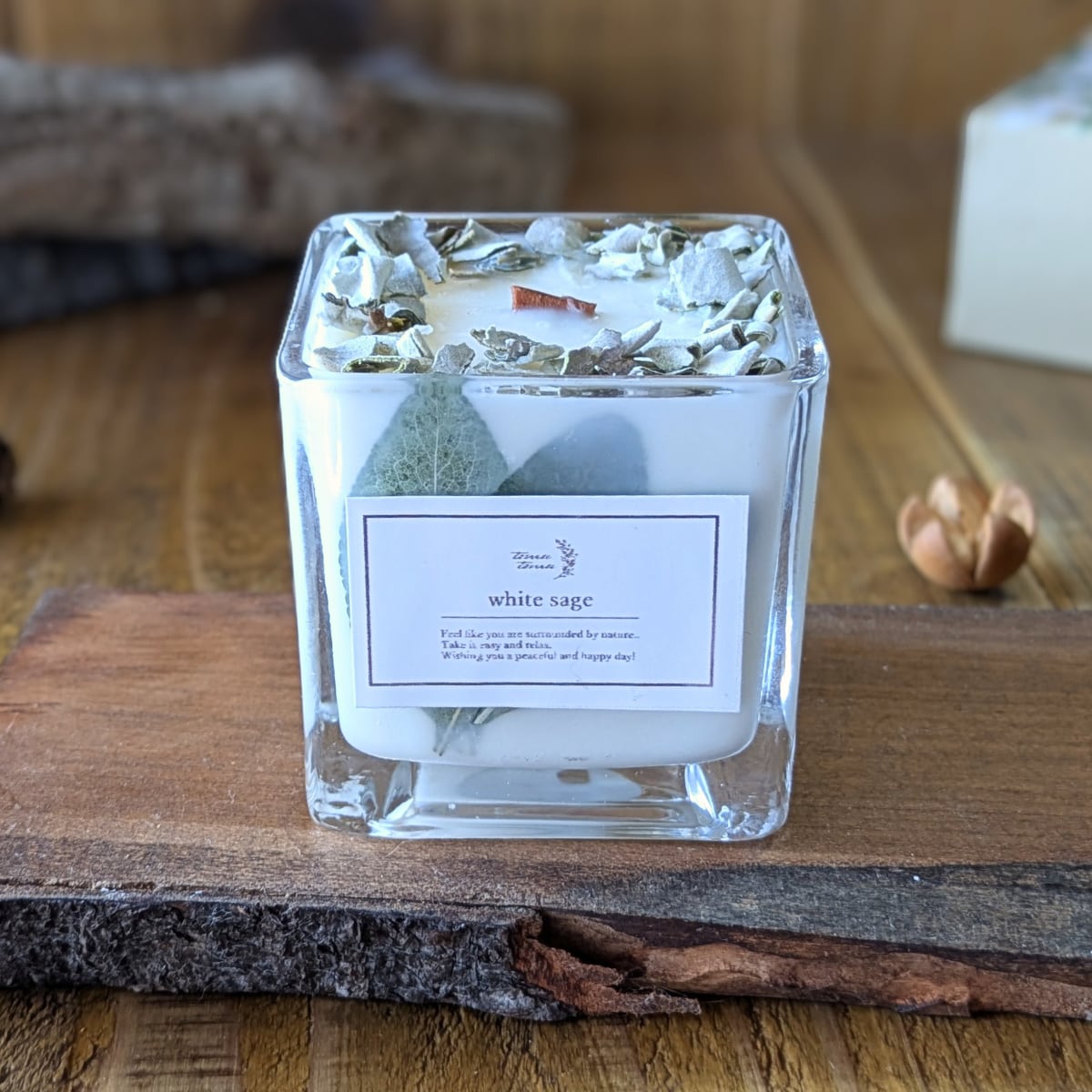 キャンドル アロマ 香り 木芯 焚き火 癒し お風呂 ソイワックス スクエア ホワイトセージ