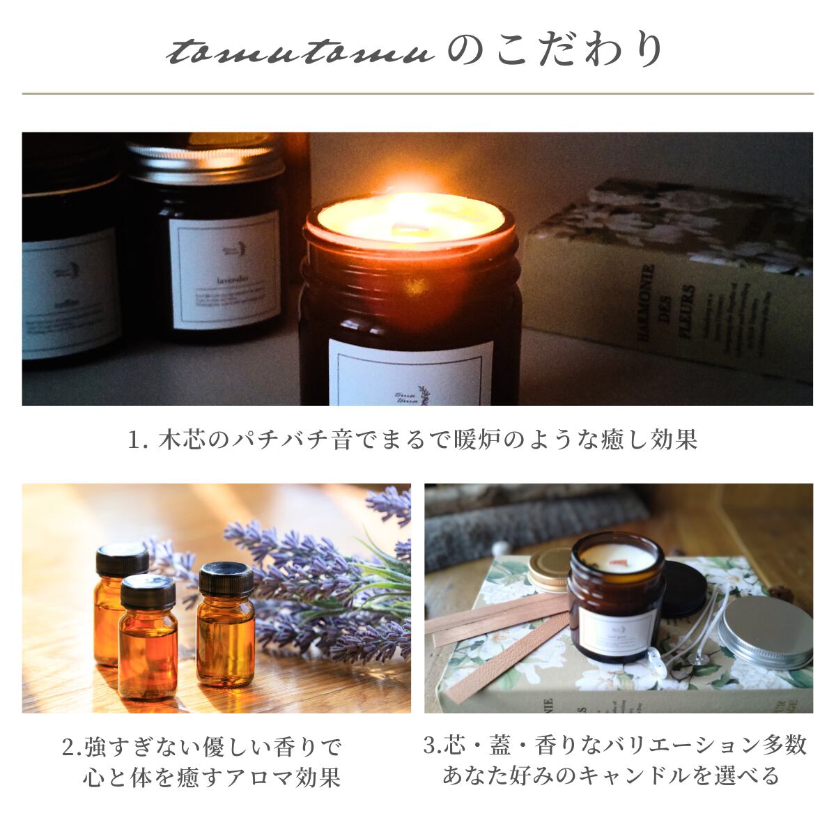 植物性の ソイワックス100% と、焚き火のように“パチパチ…”と音を楽しめる 木芯を使用した、癒しのキャンドルです。